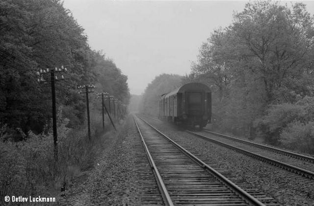Personenzug Richtung Göttingen nach Passieren des Bahnübergangs Rischenkrug