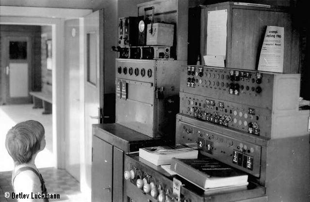 Stellwerk Groß Ellershausen im Mai 1980, der Fahrkartenschalter (die Reisenden standen draußen) befand sich links außerhalb des Bildes.